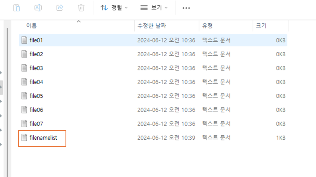명령어 실행시 해당 위치에 지정한 filenamelist.txt 가 생성.