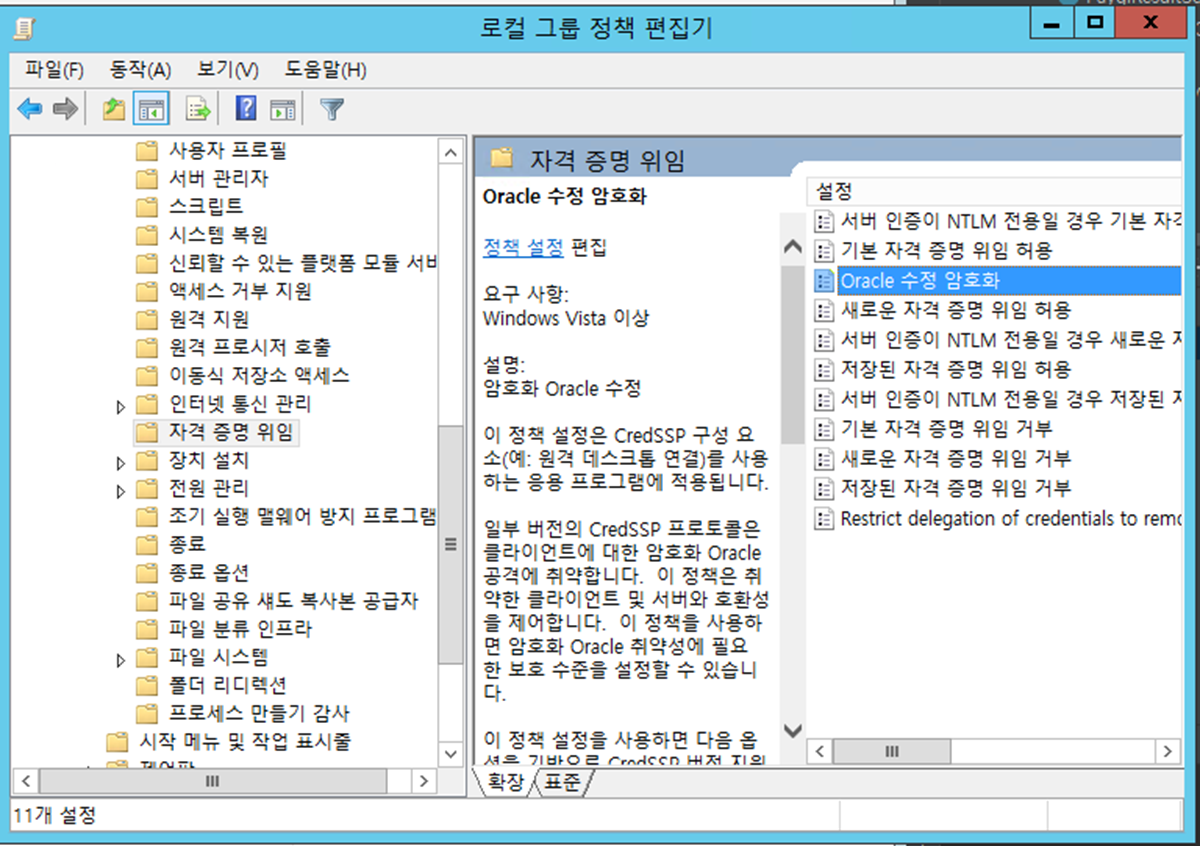 ② 관리탬플릿 > 시스템 > 자격 증명 위임으로 이동