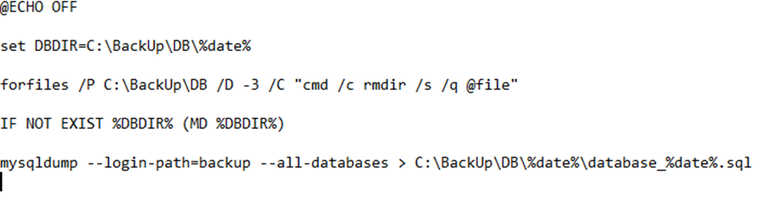 mysqldump --login-path=backup --all-databases > C:\BackUp\DB\%date%\database_%date%.sql