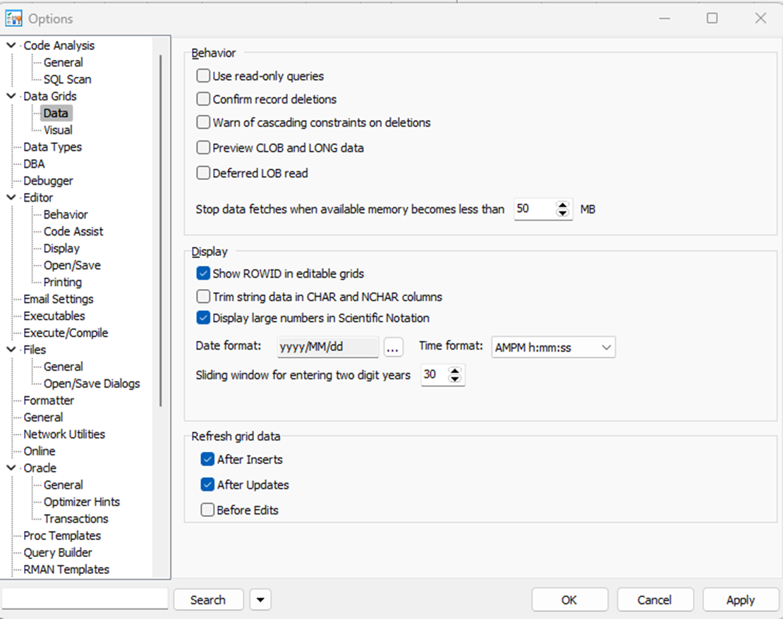 [Display] > Show ROWID in editable grids 체크추가 후 적용