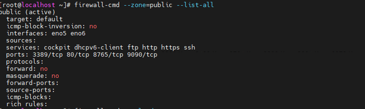 firewall-cmd --zone=public --list-all